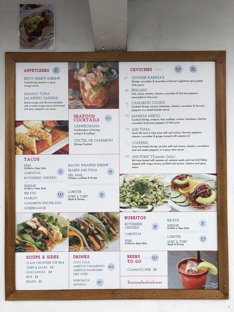 Karina's Ceviches & More is a seafood Mexican restaurant located in San Diego. The menu offers a variety of dishes, including ceviche tostadas with ahi tuna or shrimp, seafood cocktails like campechana, and appetizers such as mango jalapeño sashimi and shrimp taquitos. The restaurant provides a range of amenities, including delivery, takeout, reservations, and outdoor seating. Karina's also caters to different dietary needs, with options for gluten-free and vegan diners. The vibrant flavors and fresh ingredients used in the dishes showcase the culinary expertise and attention to detail at Karina's Ceviches & More. Whether you're looking for a quick lunch or a special dinner, this restaurant offers a delightful dining experience in a casual setting.